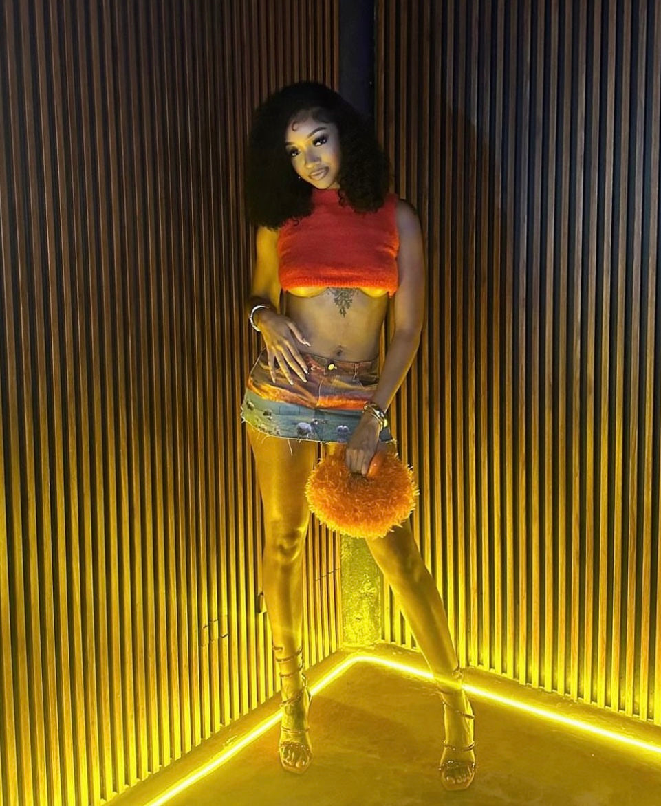 Gently used Size Small Red Fur Crop Top and Designer Skirt, worn only once.