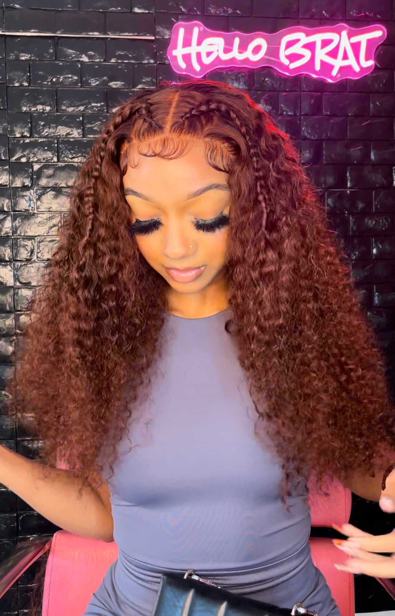 13X4 Burgundy Color HD Lace Front Human Hair Wigs With Baby Hair Free Part Deepwave Curly Hair. *Comes Braided*