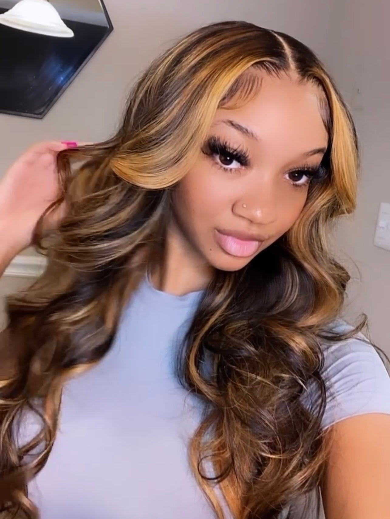 13X4 Blonde Highlight Color HD Lace Front Human Hair Wigs With Baby Hair Free Part Bodywave Hair.