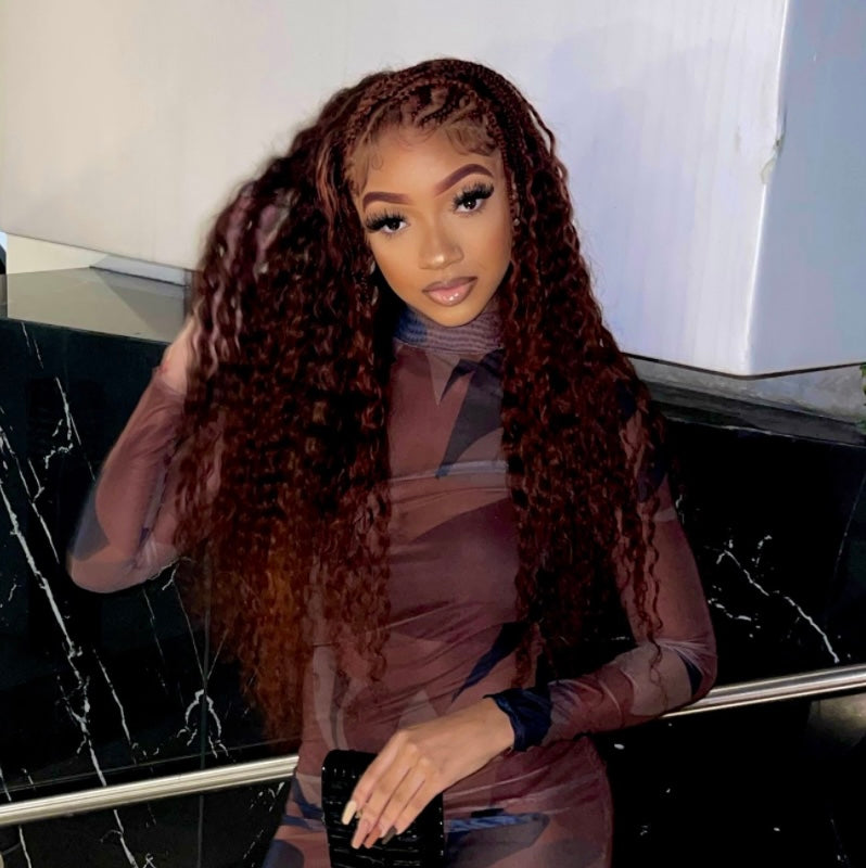 13X4 Braided Burgundy Color HD Lace Front Human Hair Wigs With Baby Hair Free Part Loosewave Curly Hair.