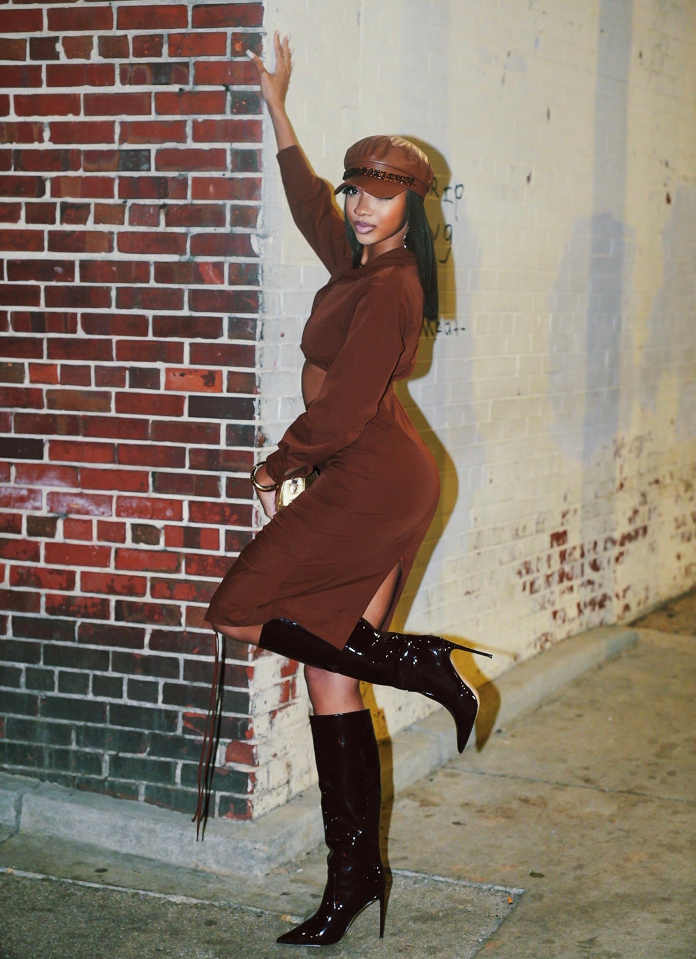 Gently worn Runched Dress Color Brown, Size Small only worn once.