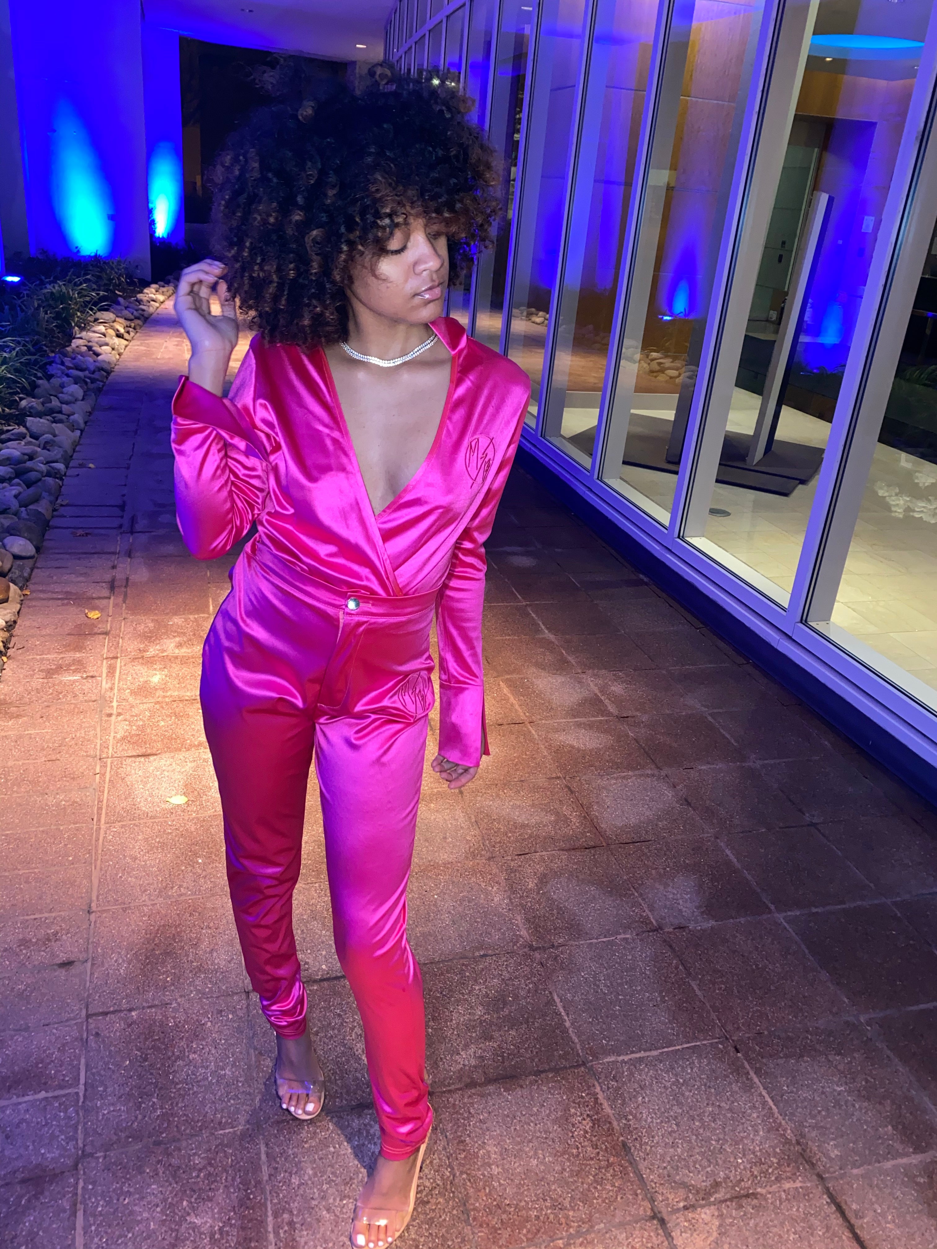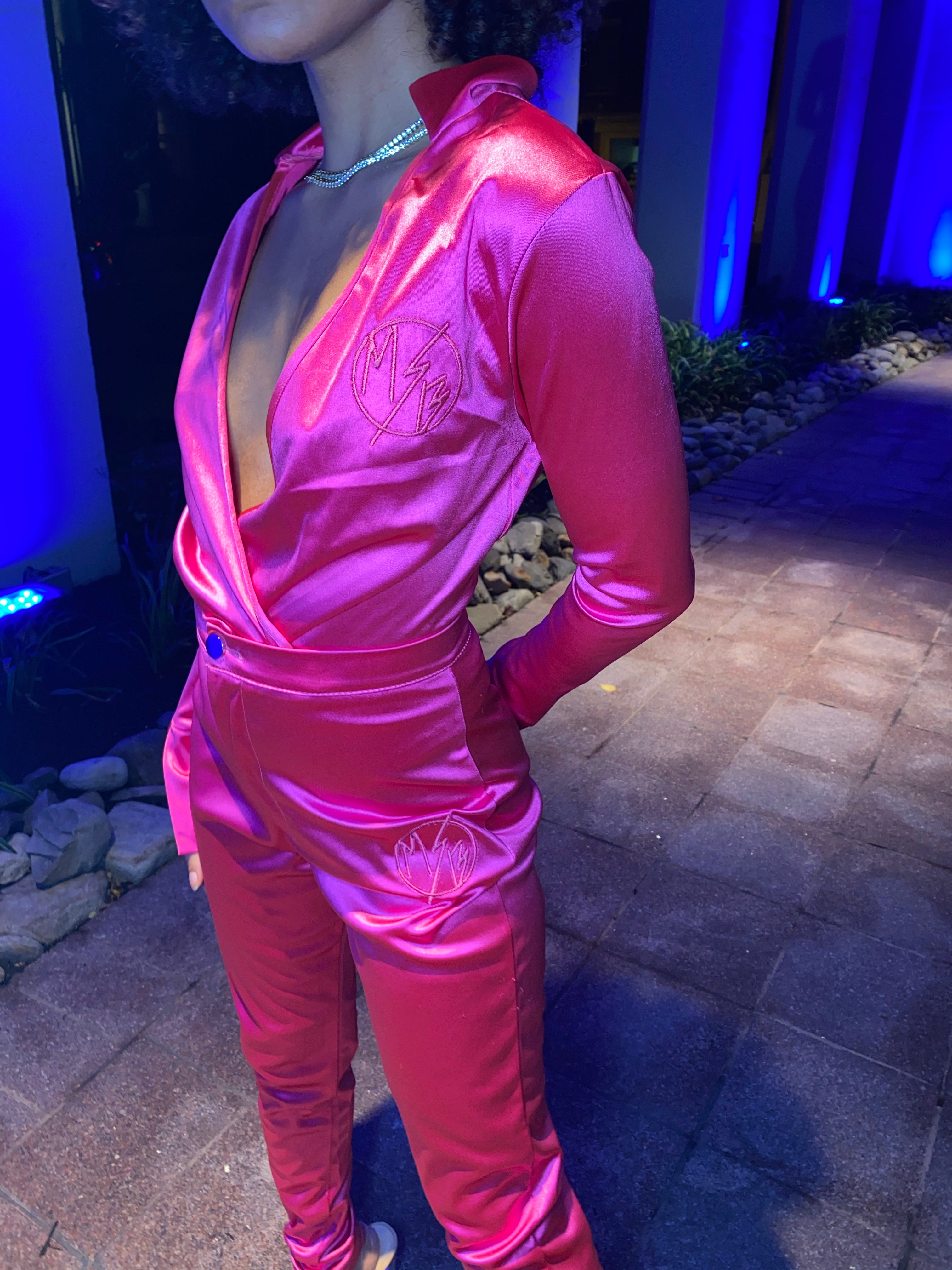 2 Piece: Satin Body Suit and High-waist Pant   Polyester Material  Runs True to Size *Model Wearing Size Small