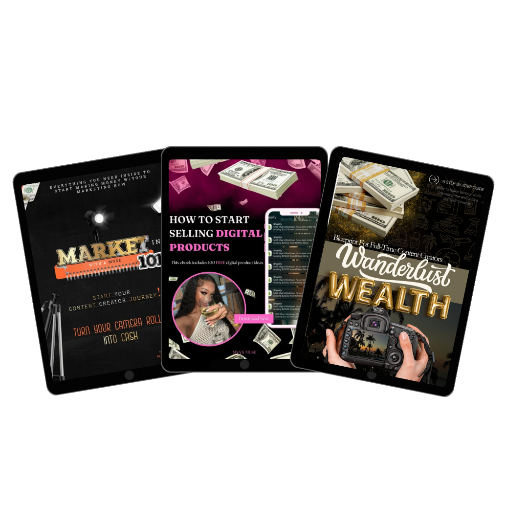 Learn How to Create and Sell Digital Products + Marketing your Brand and Products + Become a Full Time Travel Creator all in one! You will have access to over 120 pages of Information on to how to get rich off Content!